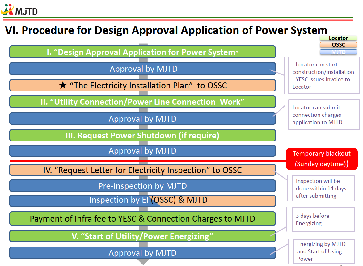 Locators shall submit the “Design Approval Application for Power System” DAAPS with Format A_P after received approval from construction team for DAA. MJTD will officially accept with 3 sets of hard and soft copies (CD) all of the require document can be followed/completed according to Power Regulations.
