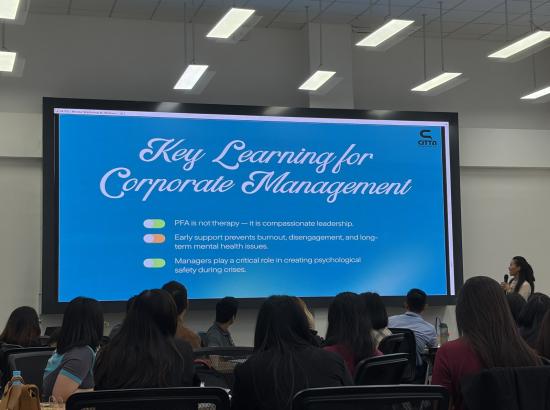 On January 13, 2026, the Community Relations Department of MJTD successfully conducted the “Mental Wellbeing and Motivation Workshop 2026: Managing Workplace Stress, Building Strength, Renewing Energy” for TSEZ locators at the MJTD Multipurpose Hall. The one-day workshop was held from 9:30 AM to 4:00 PM and was attended by 75 participants representing 31 locators, as well as MTSH, TPD, and MJTD.