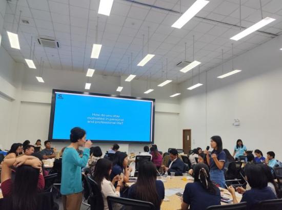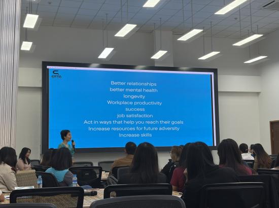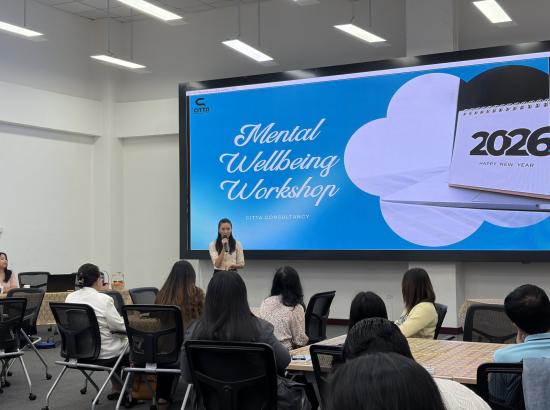 The workshop was facilitated by Counselling Psychologist Dr May Zaw Naing and Senior Wellness Counsellor Nang Kyi Pyar Maw from Citta Consultancy, and was designed to help participants to understand wellbeing and its benefits, to recognize personal strengths and assets, to enhance motivation in personal and professional life and also to reduce stress and make mindful decisions.